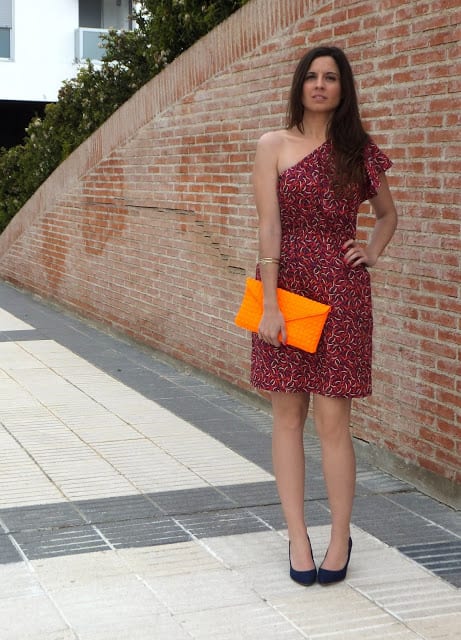 El vestido es una preciosidad y me gusta mucho la combinación con el clutch naranja.
